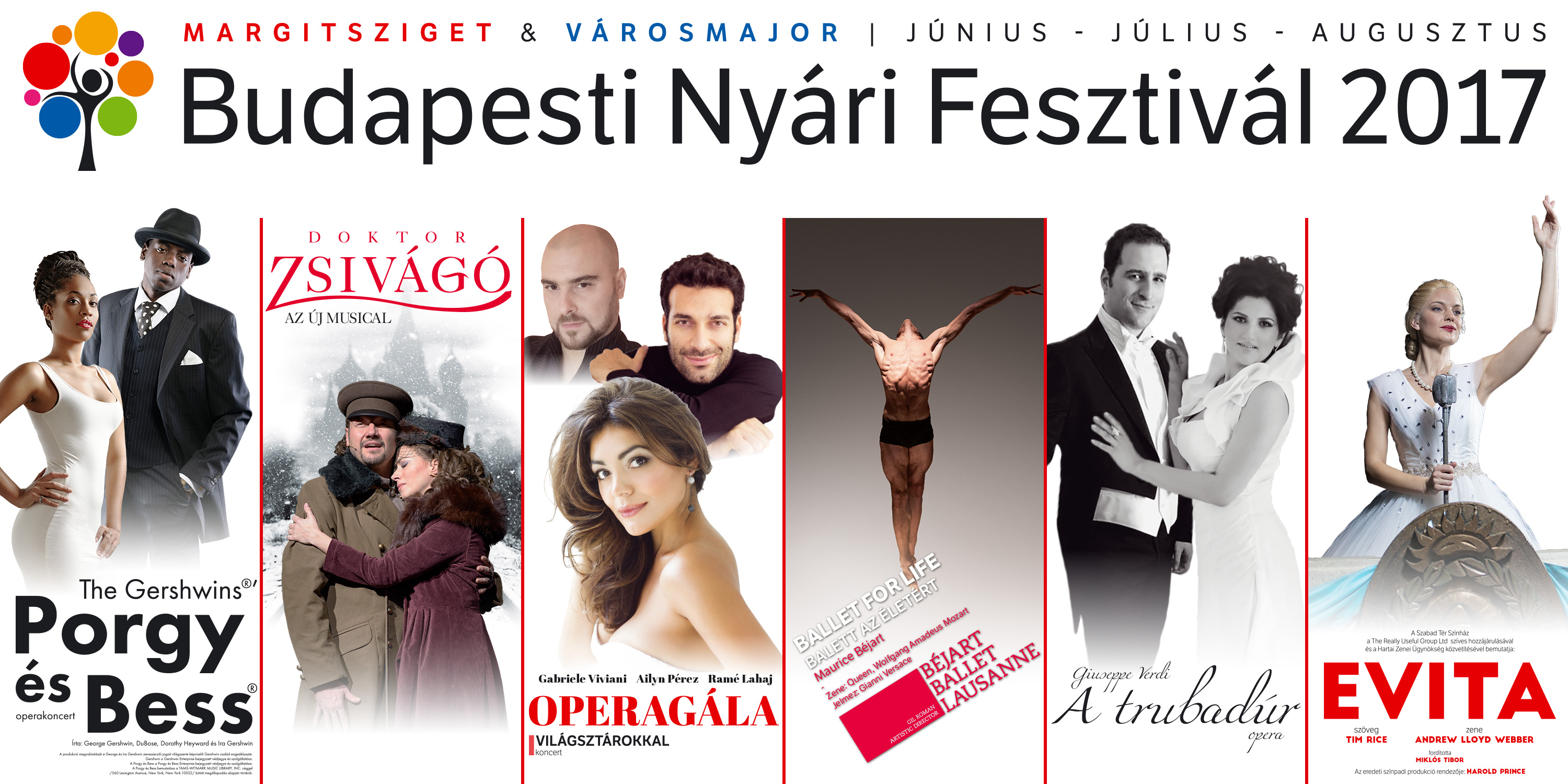 During the past days started to have the season tickets out on sale for the Budapest Summer Festival 2017 to the Margaret Island Open Air Theater. These are of he first six outstanding performances, as:  Gershwin’s: Porgy and Bess opera concert,  M.Weller – M.Korie – A.Powers – L.Simon: Doctor Zhivago and Evita musicals, Verdi’s Il trovatore, Soweto Gospel Choir and Opera Gala with world stars as: Ailyn Pérez, Gabriele Viviani, Rame Lahaj and The Best Songs FilMusic – symphonic film music concert, A.L. Webber – Tim Rice: EVITA – musical.